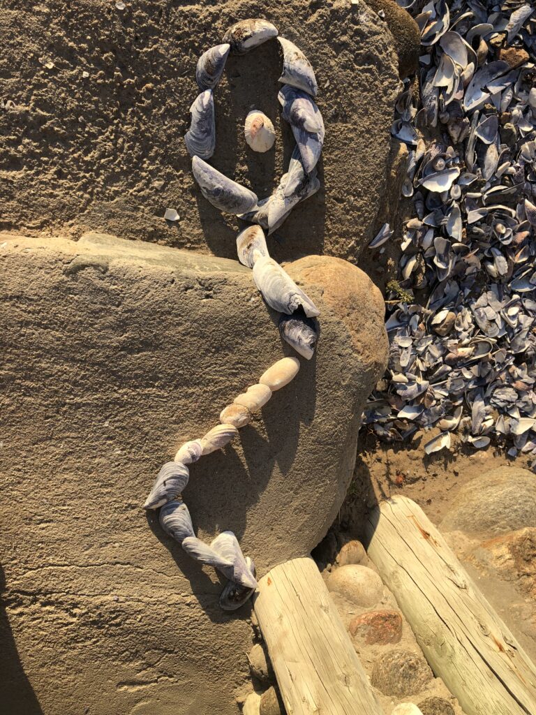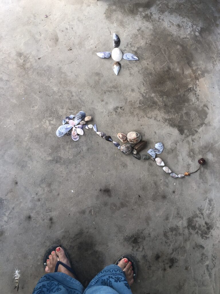 This reminds me of our playful holiday time at the coast, where we used found shells, made a small gesture with them on the toilet floor, and it became a space for an ‘open work’.